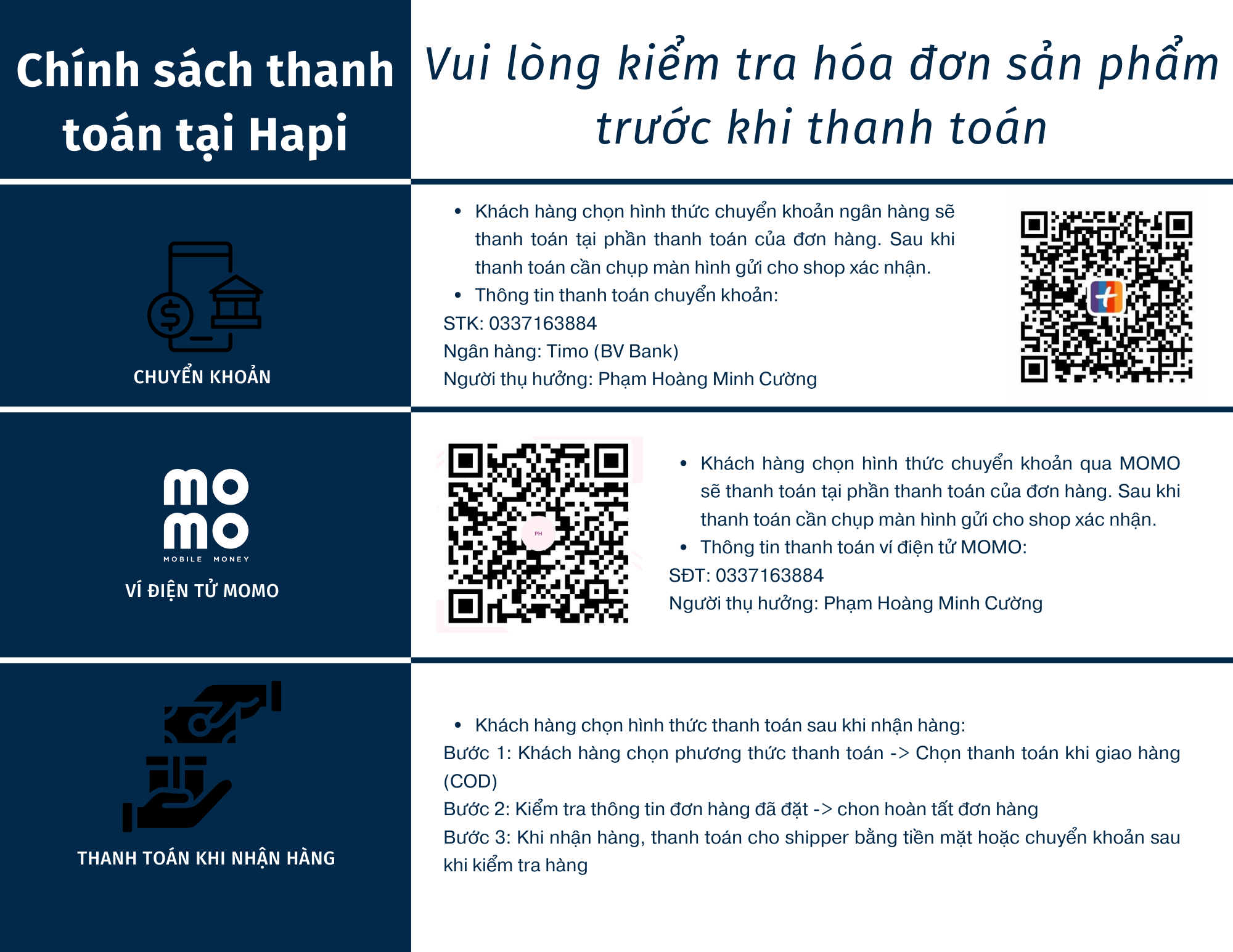 CÁC PHƯƠNG THỨC THANH TOÁN TẠI HAPI WORKSPACE
