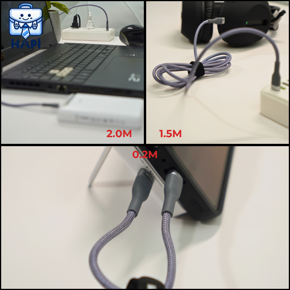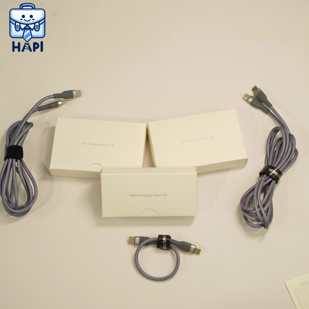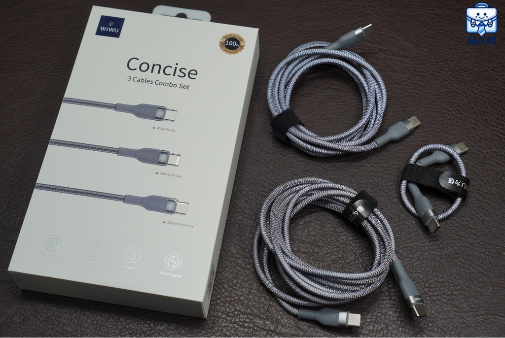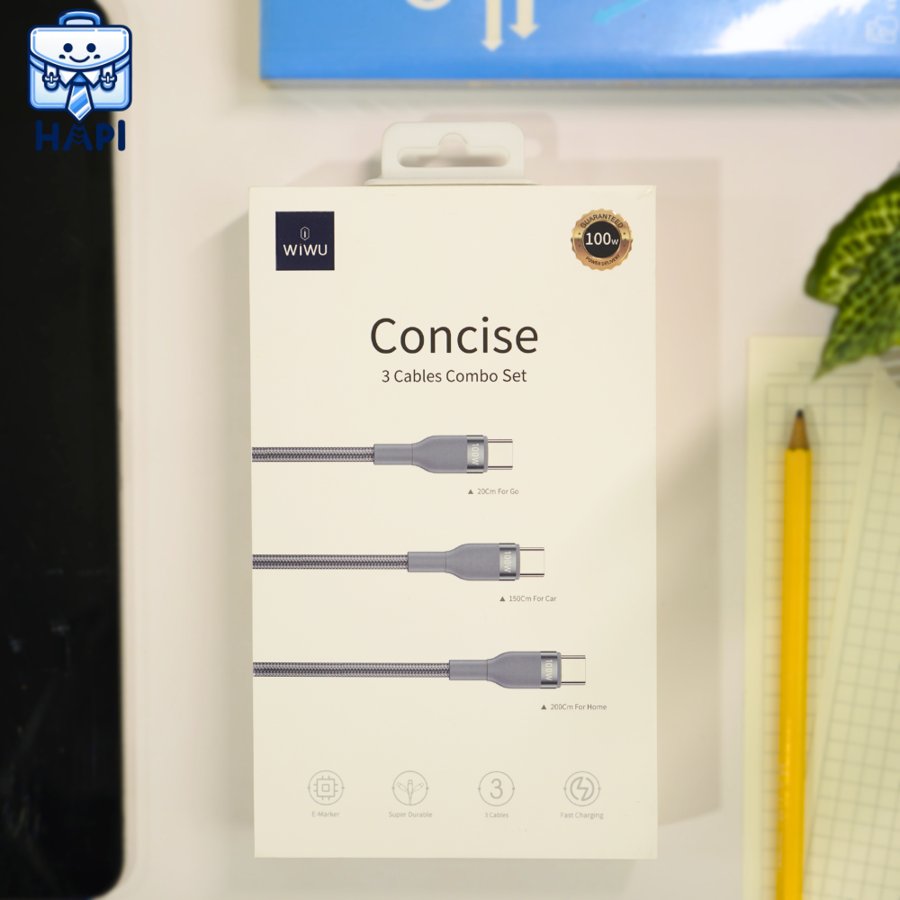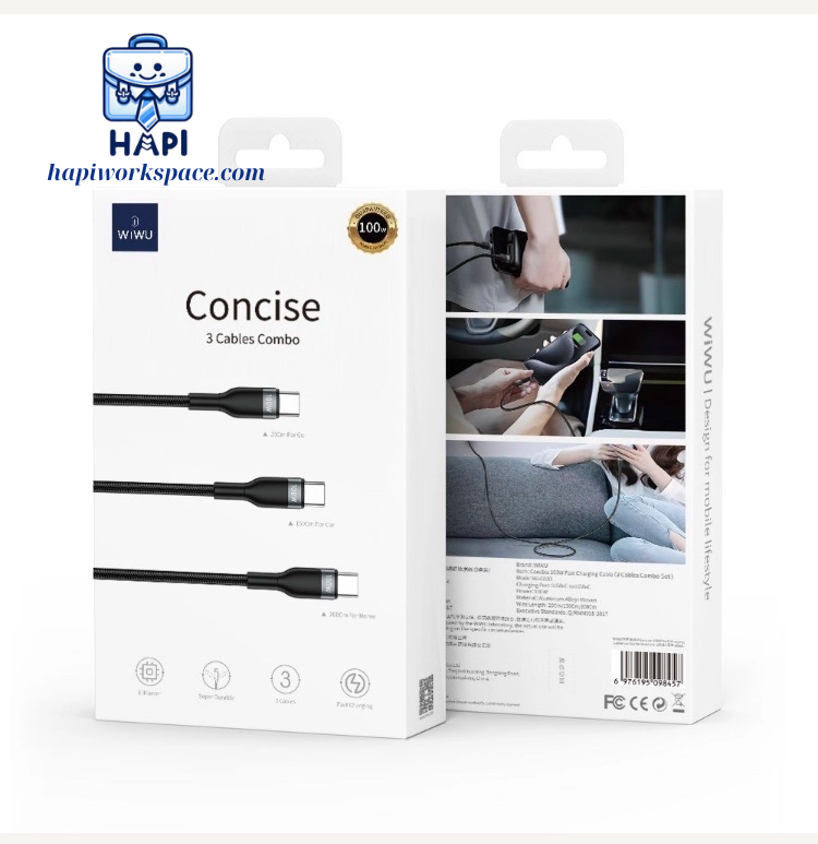 Cáp sạc WiWU Concise 3-in-1 100W WI-C033, combo 3 cáp, bọc dù