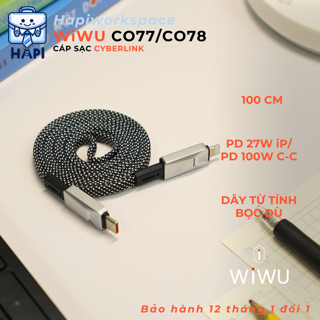 Cáp sạc WiWU Cyberlink sợi dẹt bọc dù, dây từ tính