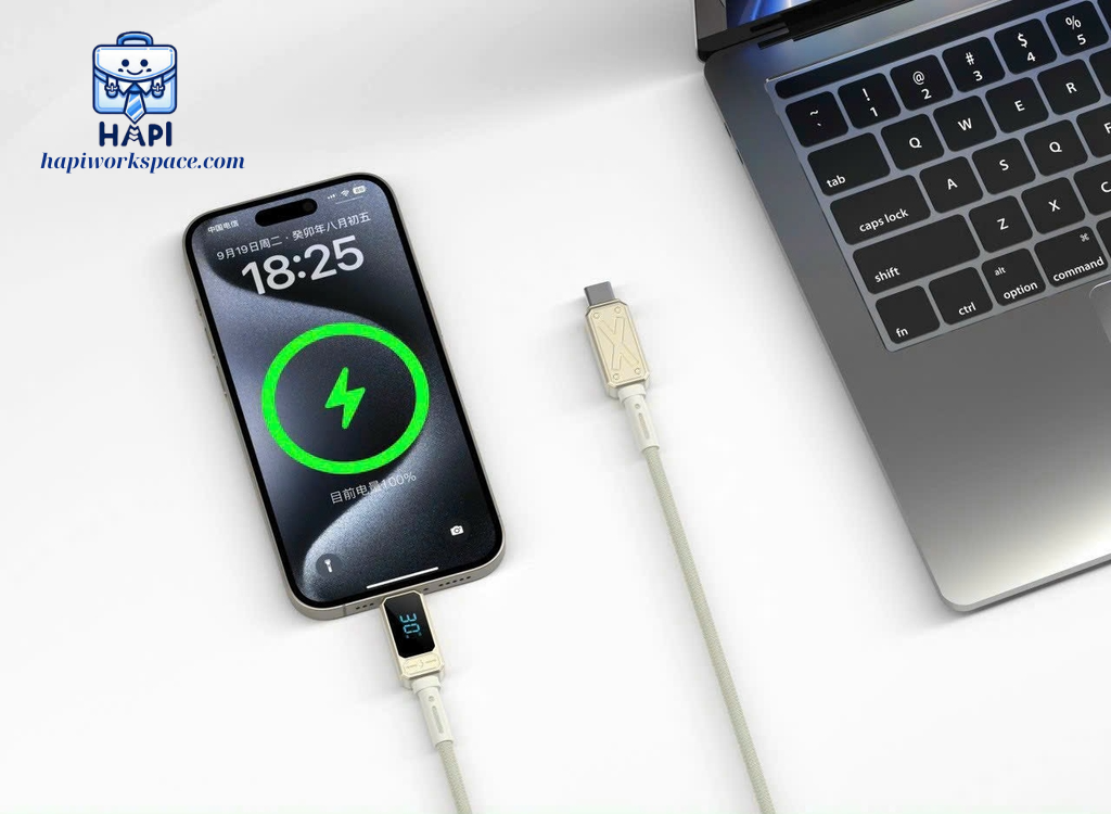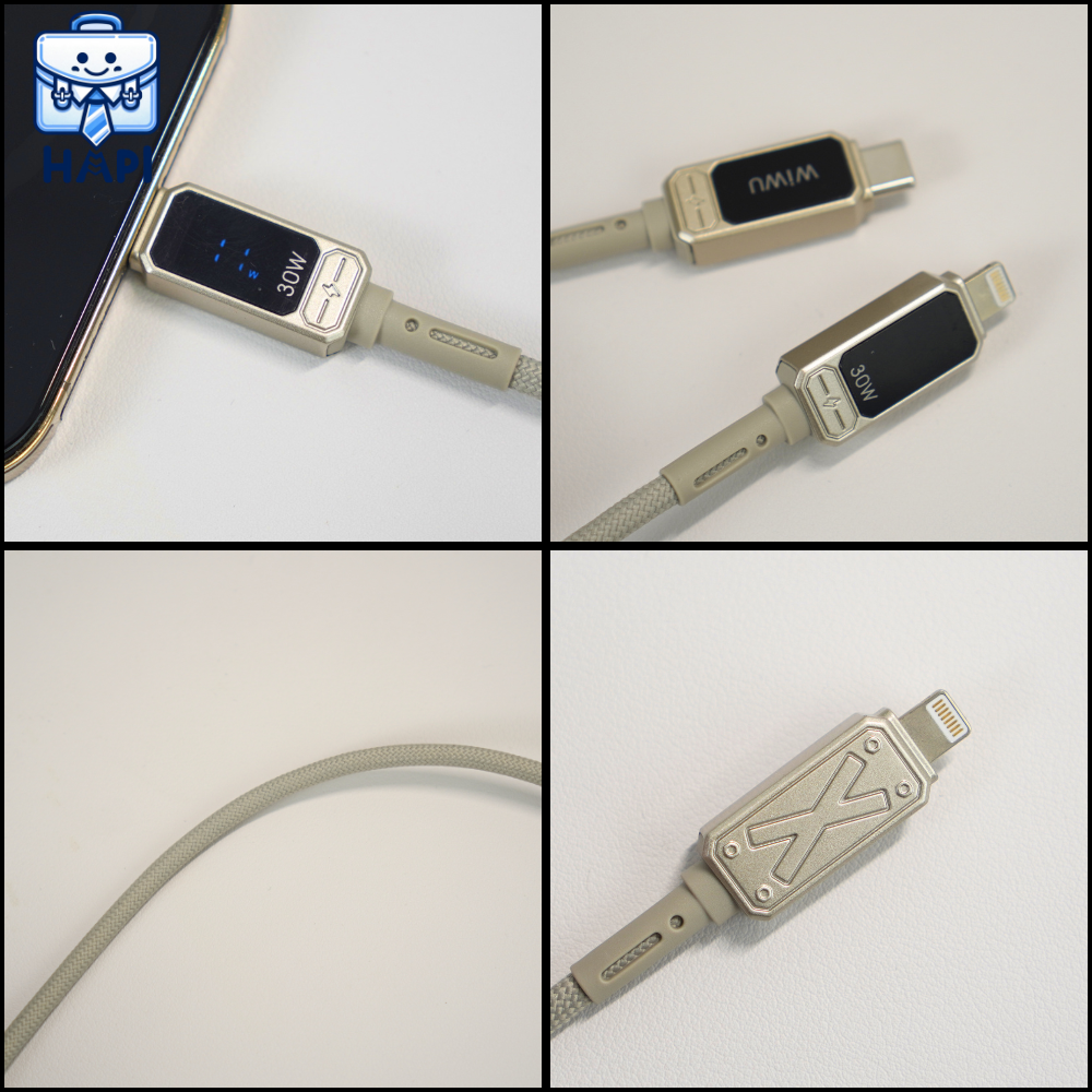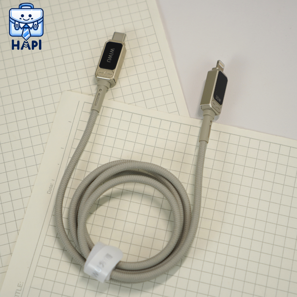 Cáp sạc WiWU Titan C to Lightning Wi-C038, siêu bền, PD30W, có màn hiển thị