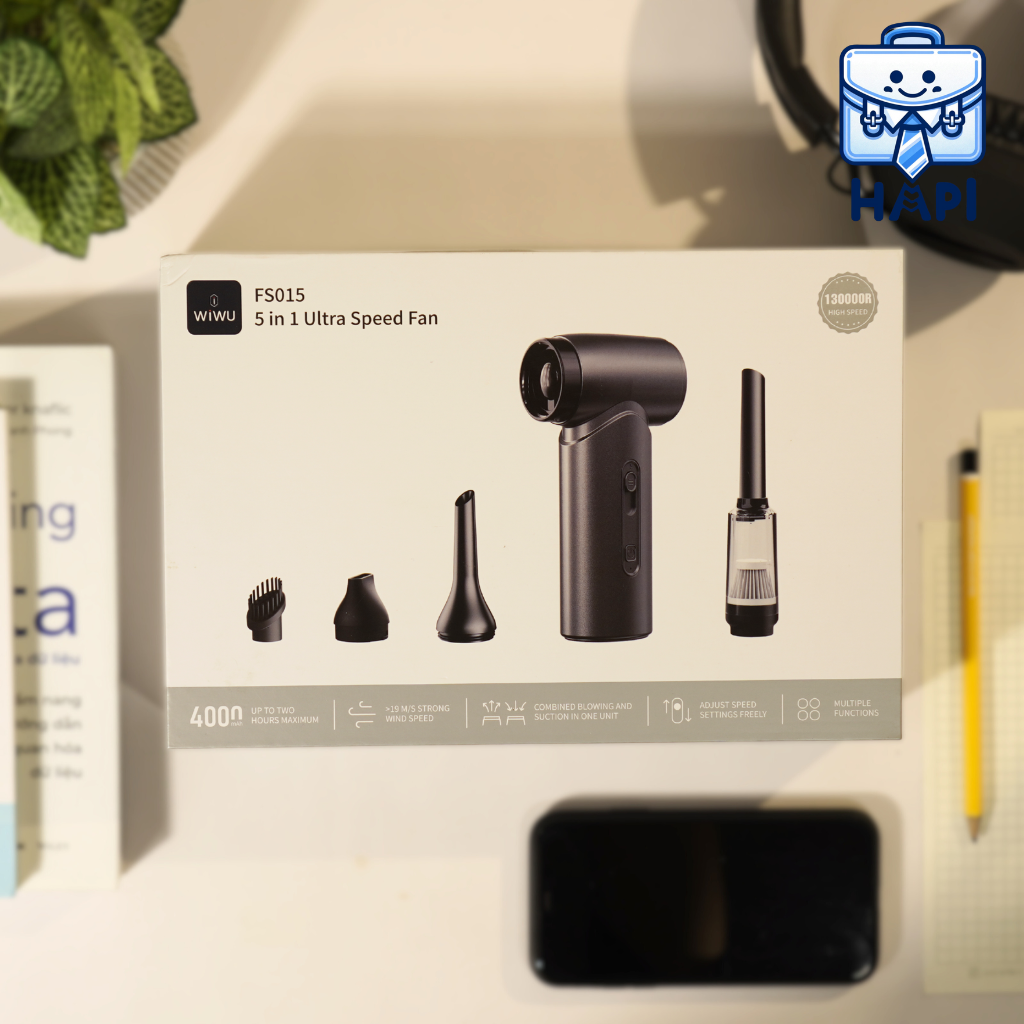 Quạt cầm tay WiWU Ultra Speed Fan 5-in-1 Wi-FS015: Quạt turbo siêu mạnh, thiết bị vệ sinh all-in-one cho công nghệ