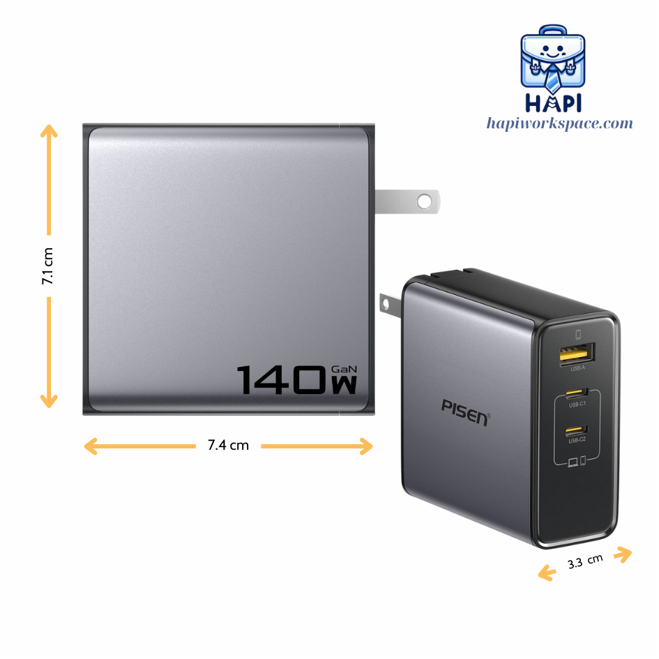 Củ sạc GaN Pisen Bolt Pro 140W, tản nhiệt thế hệ mới, PD3.1